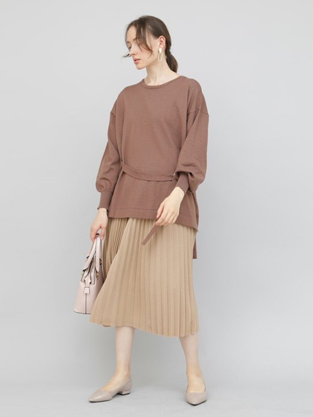 トレンドの前後差ありのゆるっとニットトップス。 バックル付きの腰ひもは、前にも後ろにも付けられるので コーディネートの幅が広がります。 長めの袖リブが大人っぽく、きちんと見えするデザインニットです。