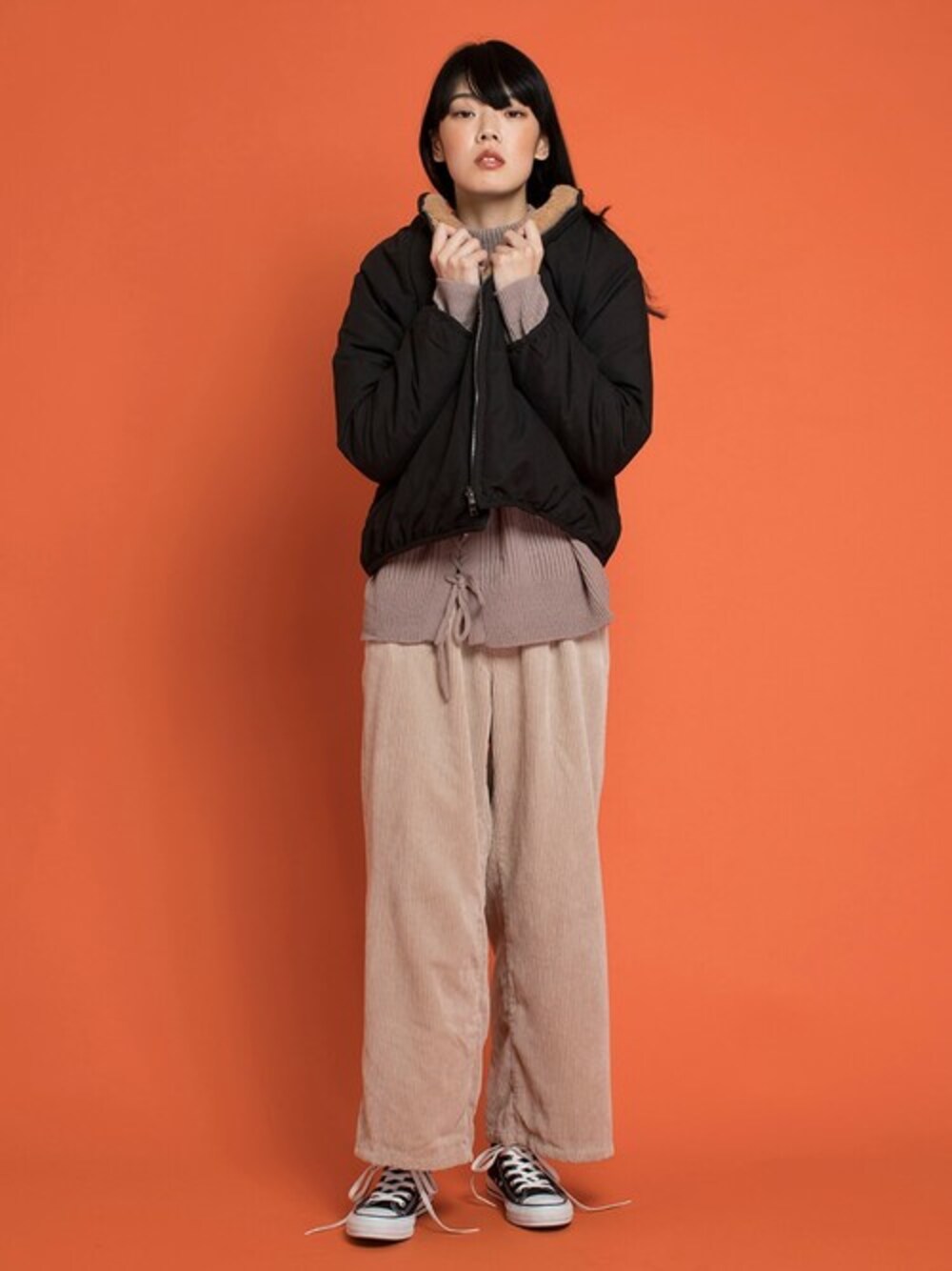 aimoha(aimoha online shop)のノーカラージャケット「リバーシブルボアジャケット」を使ったコーディネート