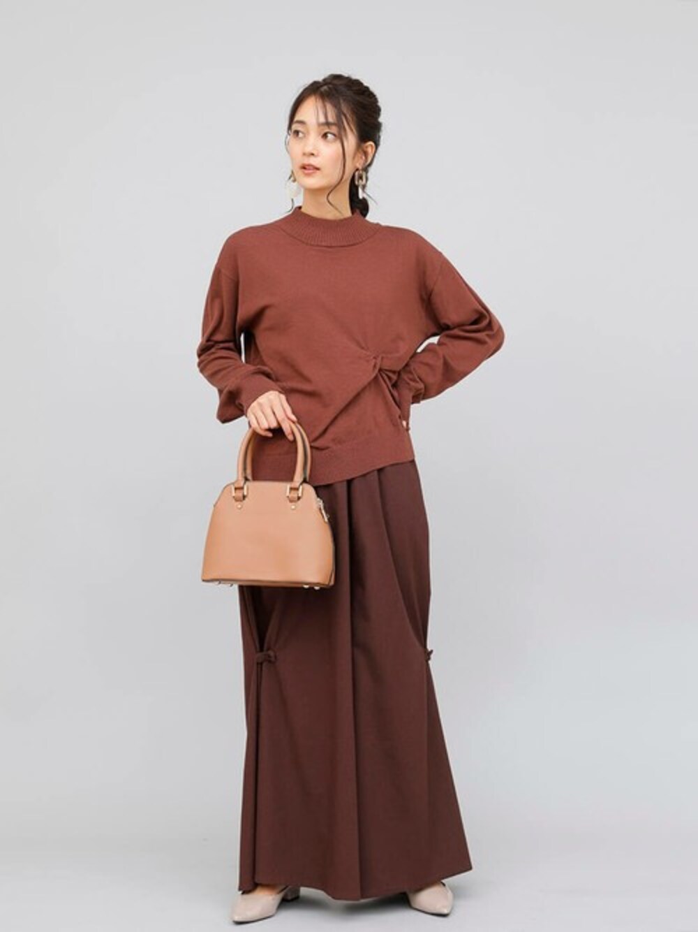 フロントにアクセントされたツイストディテールがぐっとトレンド感を演出してくれる一枚。 茶系のカラーを着用されますと、今期らしいモードライクな印象。 ベーシックカラーはデイリーにコーディネートしやすく着こなし幅が広がりそう。