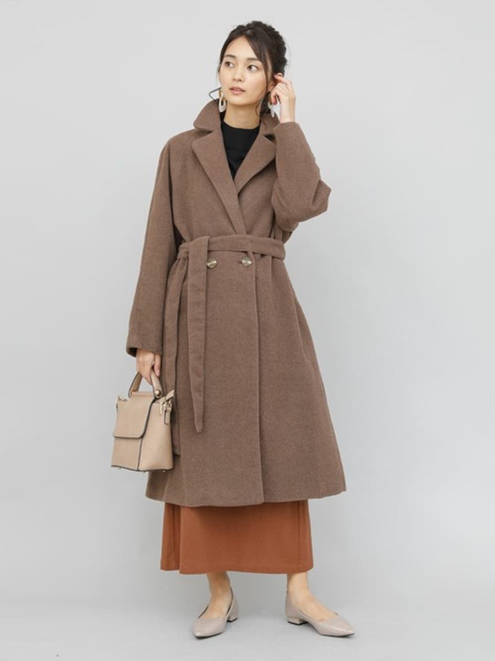 ガウンのようにサクッと羽織れるリッチ感のあるラグランコート。 防寒性や着心地はもちろん、ウールやナイロン混の異素材で仕立てた上質で大人女性らしく、品よく魅せてくれます。 ウエストマークのベルトは締め方によっては落ち度のある印象や、かっこよく決まる印象も。 デイリーにお使い頂けるひと品です。