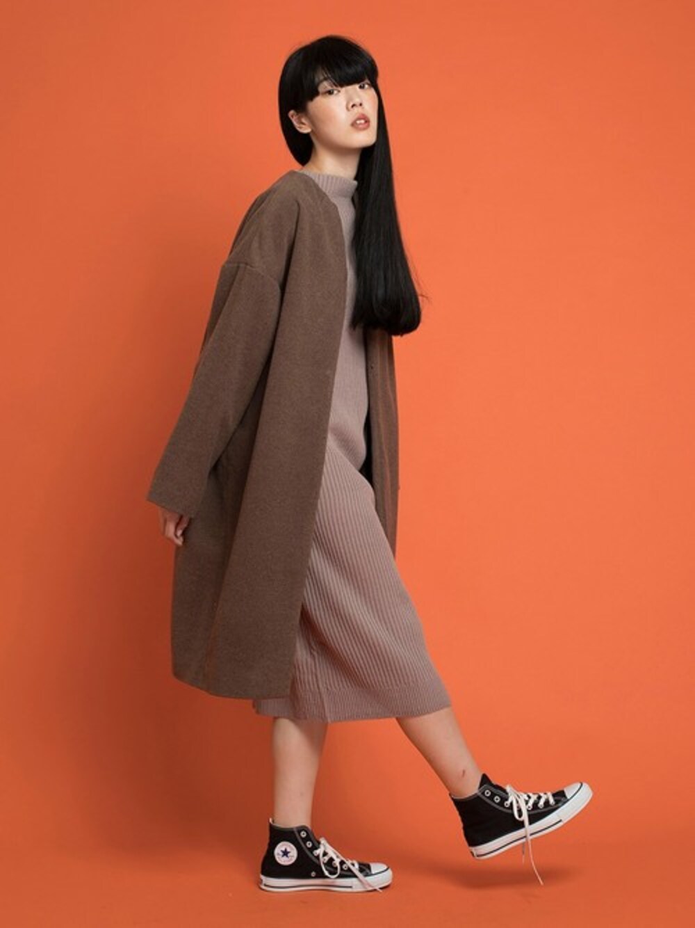 aimoha(aimoha online shop)のノーカラージャケット「ボトルネックコクーンコート」を使ったコーディネート