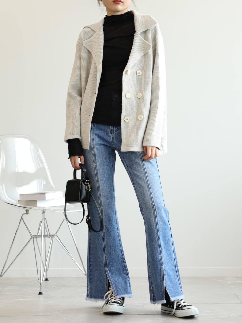 aimoha(aimoha online shop)のデニムパンツ「バックレースアップせみフレアデニムパンツ」を使ったコーディネート