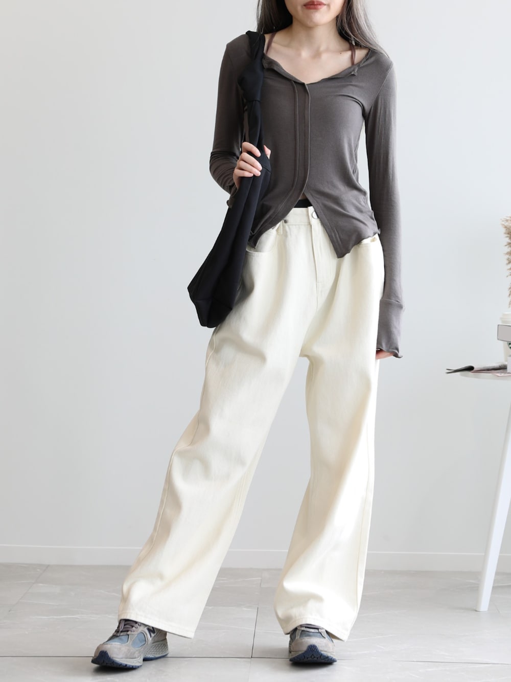 aimoha(aimoha online shop)のデニムパンツ「2WAYデザインジーンズデニム深めのウエストタックハイウエストデニムパンツ」を使ったコーディネート