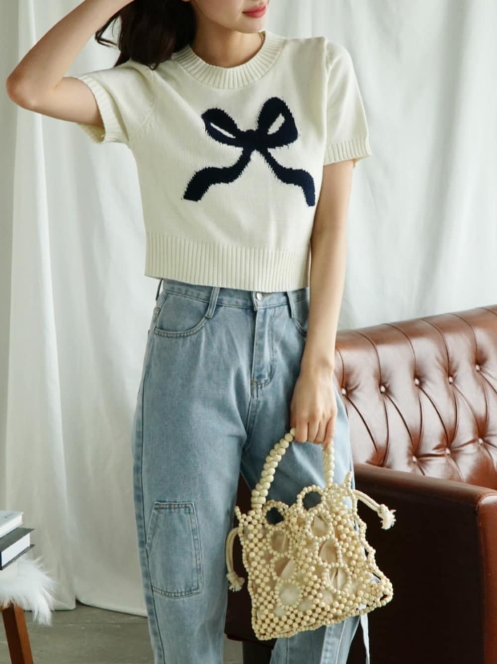 aimoha(aimoha online shop)のニット/セーター「【Jasmine】ハーフスリーブリボンニットプルオーバー (SS)」を使ったコーディネート