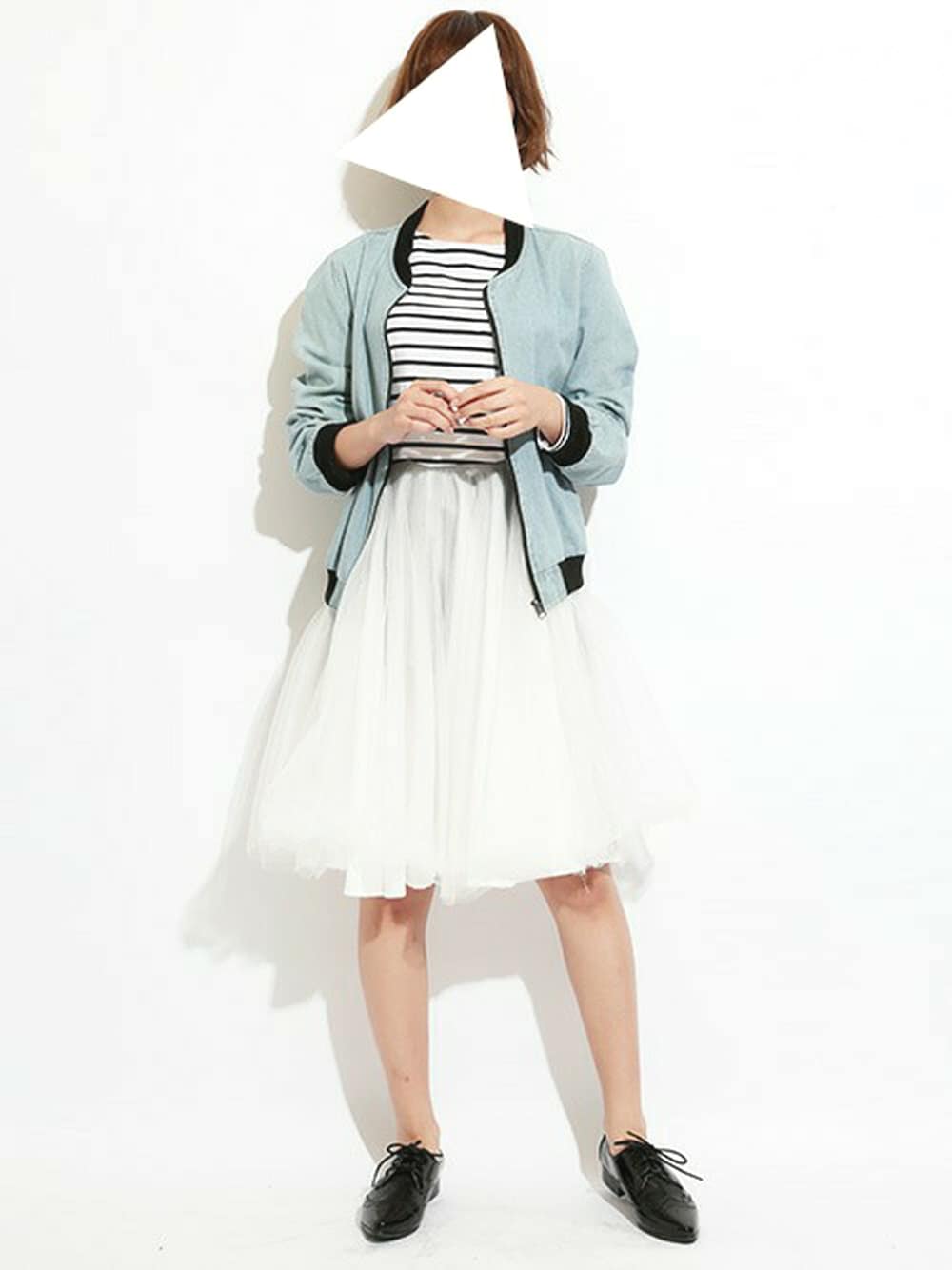 甘辛MIXのガーリーコーデ♪ライトブルーのデニムブルゾンがインパクト大☆