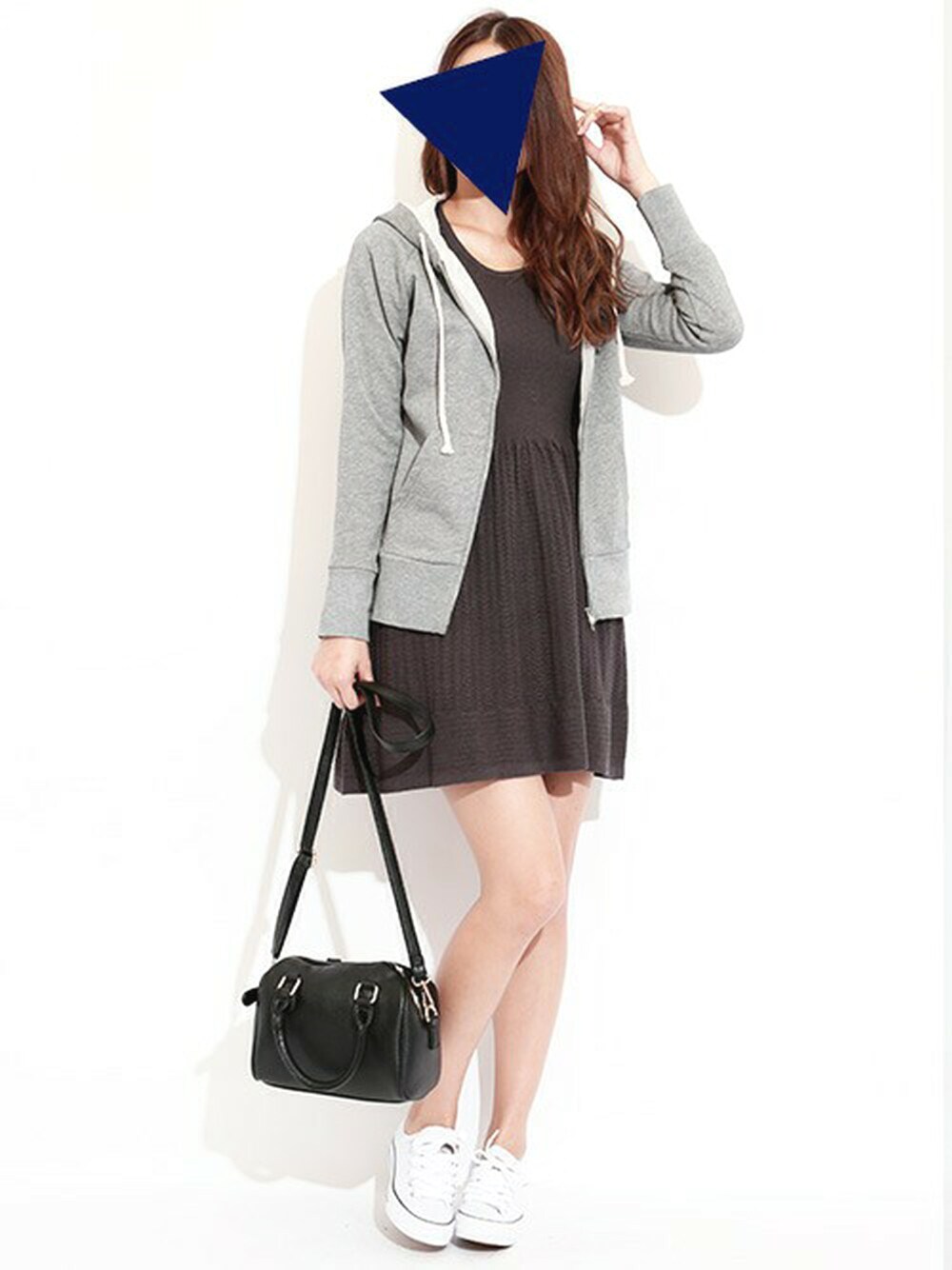 ガーリーなニットワンピースとカジュアルなパーカーを合わせた甘辛ミックス♪