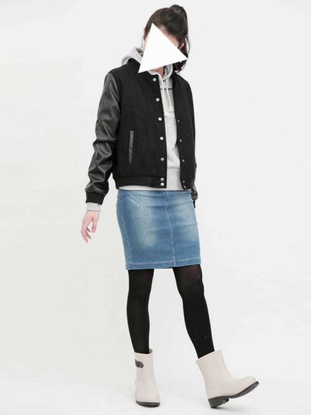 aimoha(aimoha online shop)のブルゾン「バイカラーレザースリーブメルトンブルゾン」を使ったコーディネート