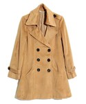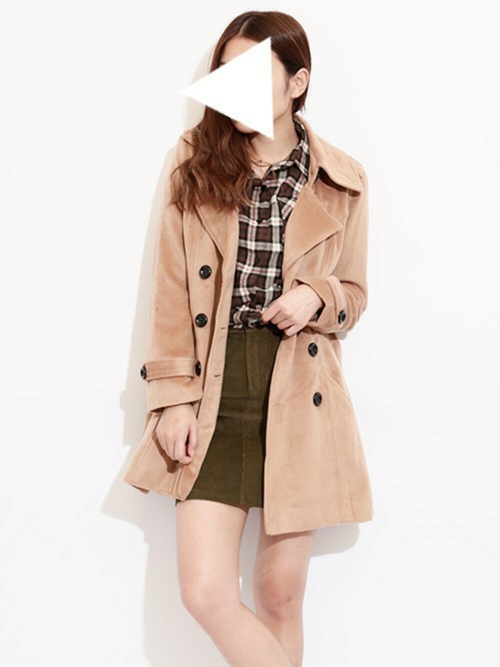 フェイクウールのトレンチコートがガーリーな雰囲気を出してくれます♪ コーデュロイのスカートとの素材の相性もピッタリ!! コートがシンプルなデザインなので中は柄物で派手にきめても◎