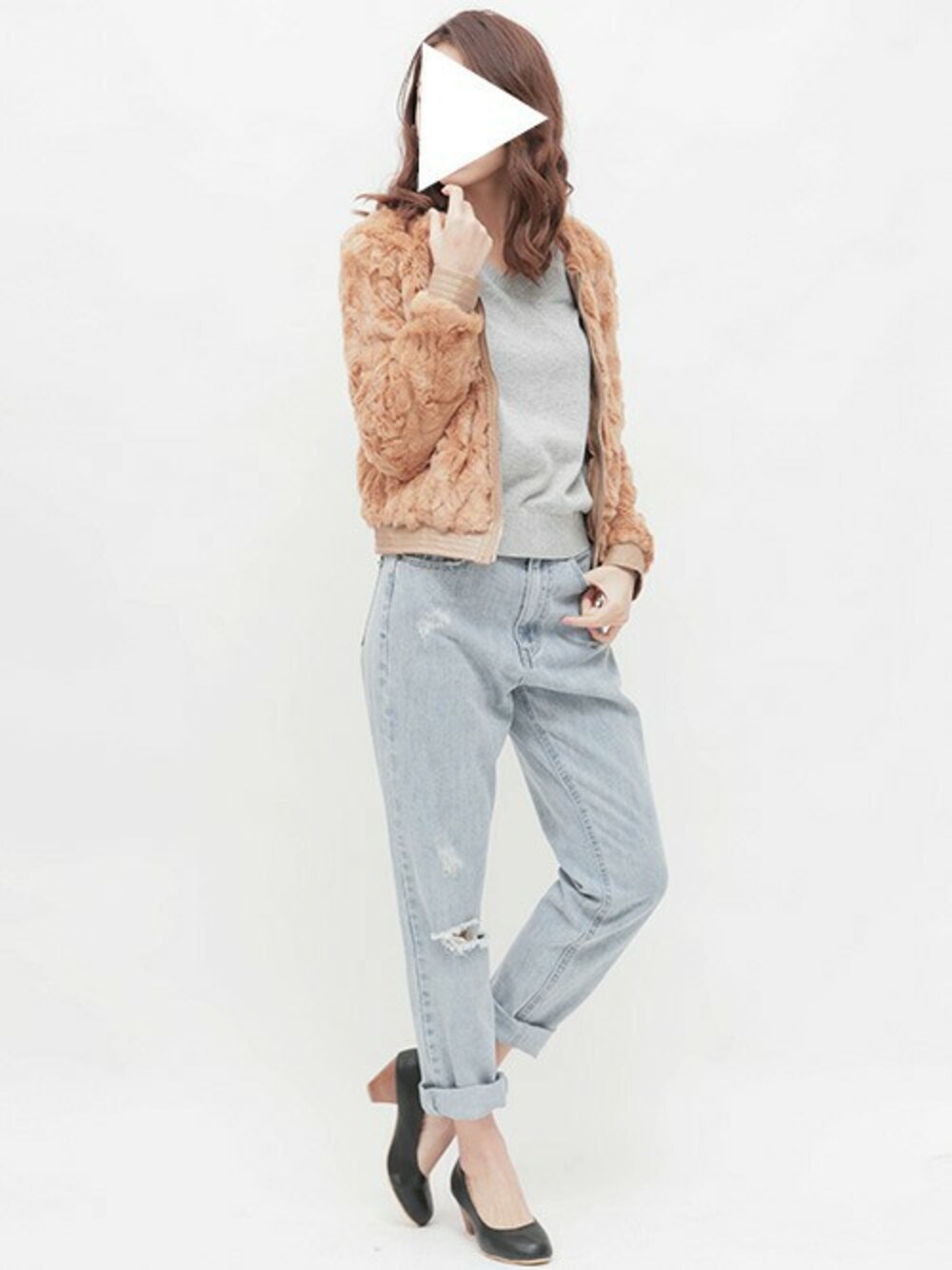 aimoha(aimoha online shop)のブルゾン「フェイクファーノーカラーブルゾン」を使ったコーディネート