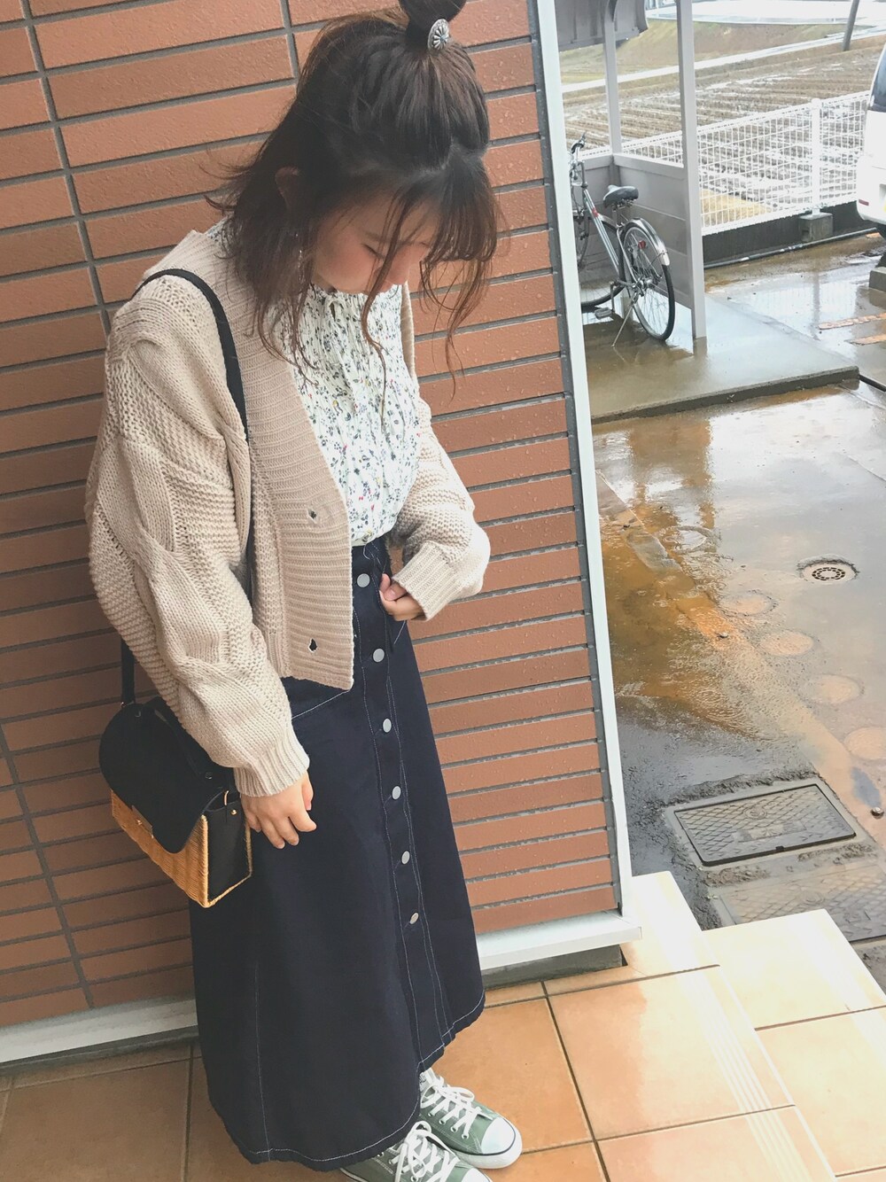 おでかけ~✨ 雨だから花粉が飛ばなくていい感じ😆💖 最近髪型が迷子でハーフアップお団子してみた🔥