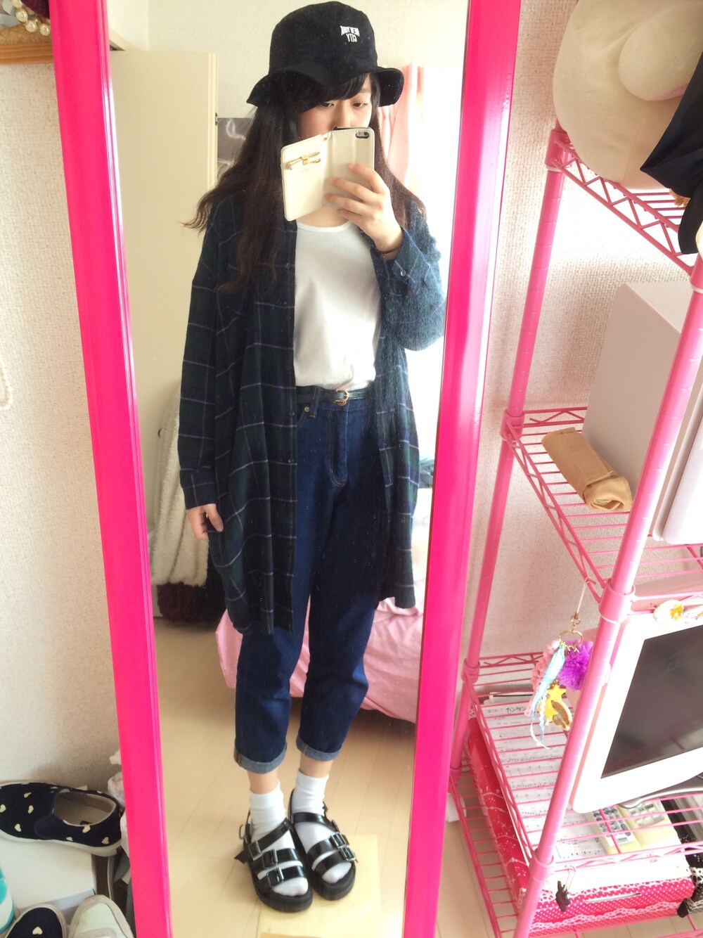 またおんなじような服装🐼🐼🐼 でもTシャツとサンダルに チェンジして春っぽく~💕 バケットハットもインしました~ 友達と🍜らーめん食べてから 学校にいきまーす😊
