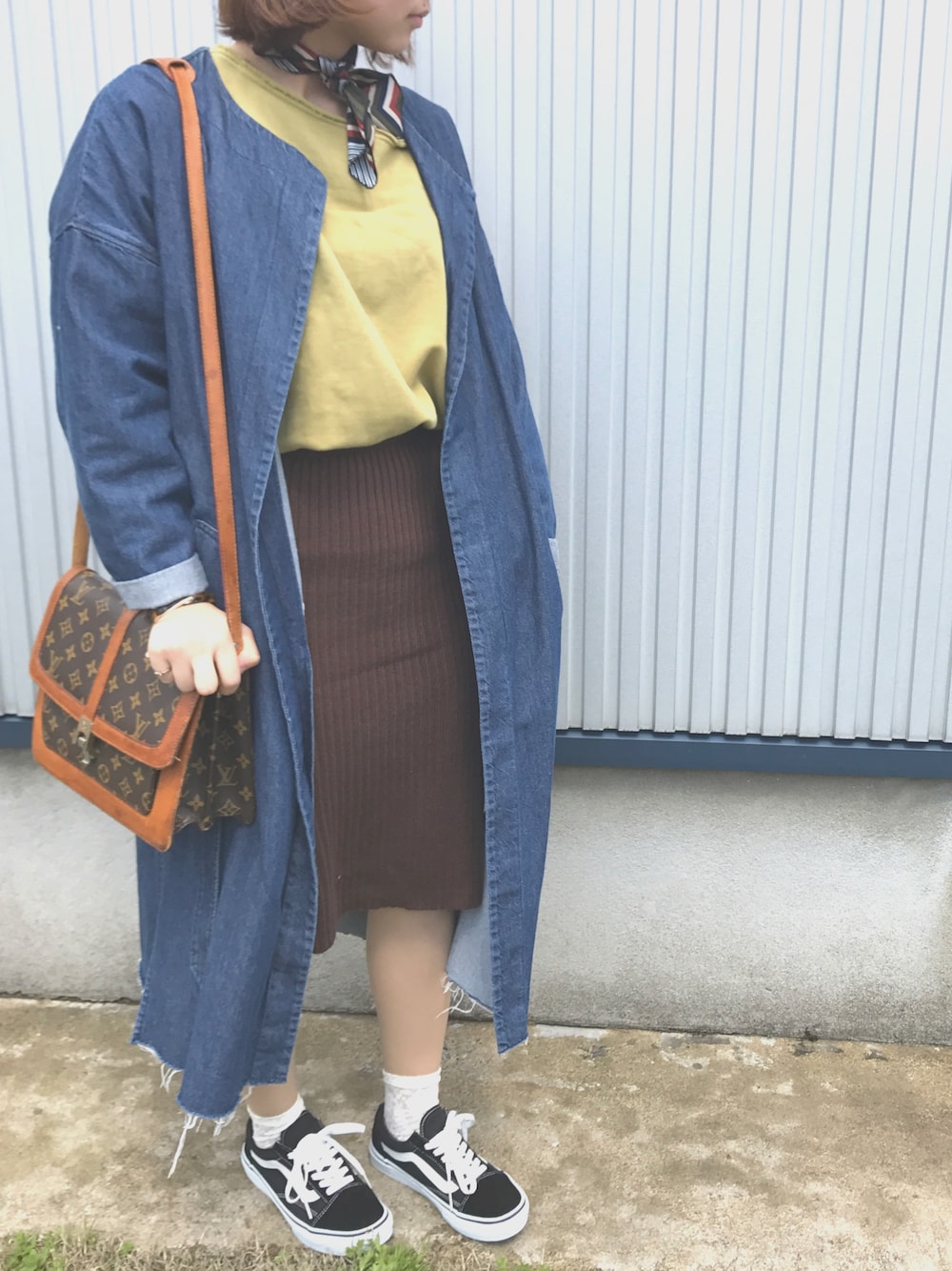 新潟はまだまだ寒いです😔 テーマはレトロ💕💕 さいきんレトロな感じにはまってて スカーフ巻いてみたり色合いとかにも気をつけてます😊 バッグは父がくれました💓