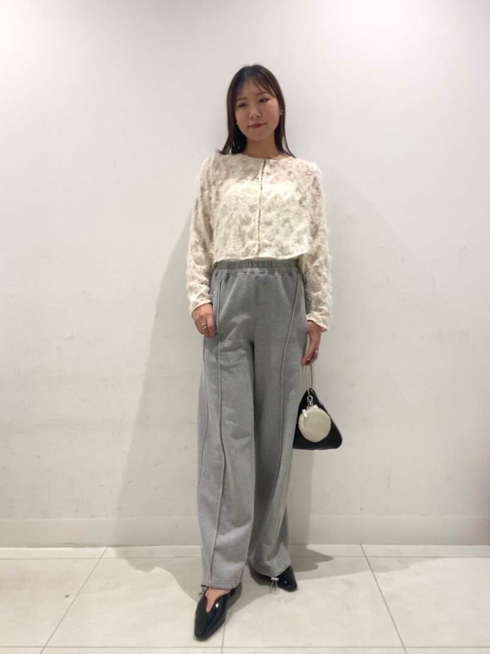 とてもきれいな形でおすすめのスウェットパンツ! カジュアル過ぎないようトップスはブラウスで合わせてみました! 3/21〜3/30までマルコとマルオの10日間開催中です!ぜひご来店お待ちしております!