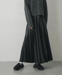 落ち着いたカラーで統一し、ニットの曲線ラインを差し色に!新作のフェイクレザーのスカートはゆったりニットと相性◎動くたび揺れるプリーツがかわいくておすすめです!