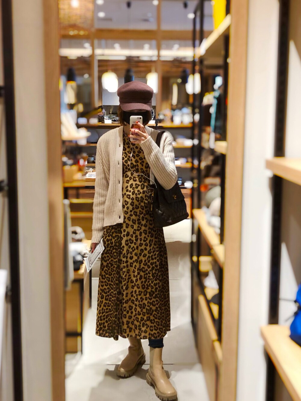 🙇♀️いつもいいねやお気に入りありがとうございます🙇♀️ キャスケットは中学生ぶりのイング!!! ウールキャスケット可愛くて2色買いしました😩🤎 とんでもないインパクトのワンピースもショートにしてバランスとれるように🐆笑笑 チェルシーブーツは着脱しにくいけれど歩きやすいです! 実はモスグリーンのルーズソックスをさし色にしています🌲 手に持っているのは買った出汁です笑笑 この後転びました爆