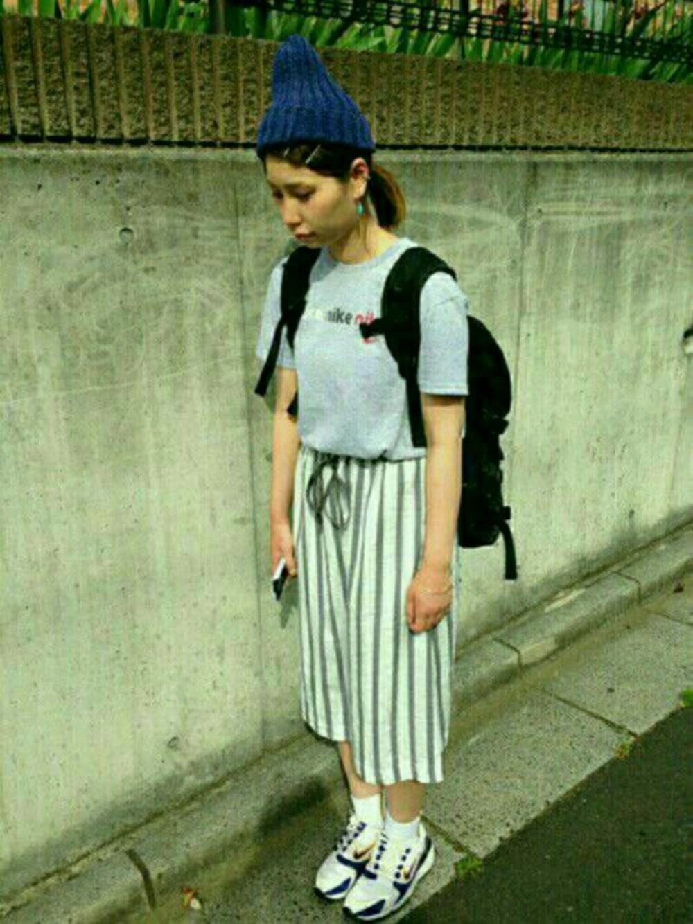 Tシャツ@NIKE 古着 スカート@SEVENDAYS スニーカー@NIKE 靴下@FILA