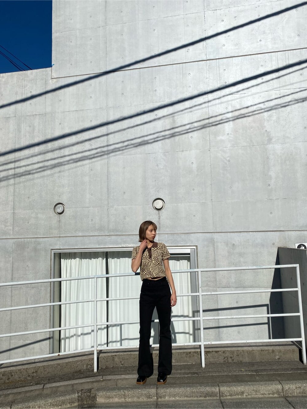 ❤︎トレンドのチェッカーKNIT❤︎EMODAらしくアレンジされたチェッカーKNITは目を惹くアイテム☺︎‼︎ショート丈なのでハイウエストボトムとの相性抜群のです♬