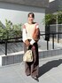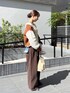 着用コーデ:86件オレンジ×ブラウンの配色がかわいい パッチワークのニットはボリューム感も しっかりあり、存在感抜群♡ ボトムは同系色のブラウンのデニムを セレクトし、ブラウンコーデに仕上げてみました🙌🏻 是非チェックしてみて下さいね💕︎