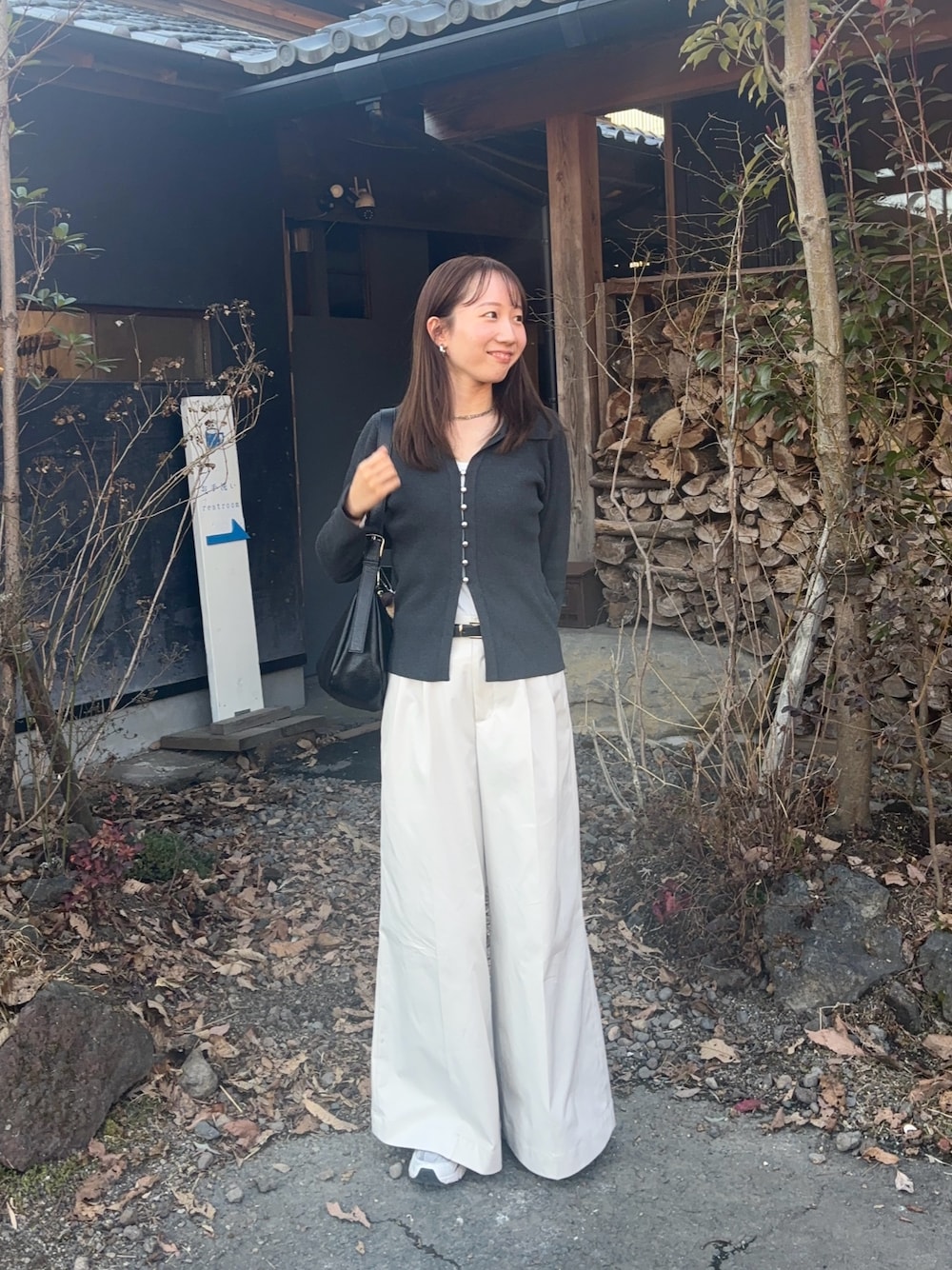 先日の休日コーデ!! グレーとホワイトで 透明感を✊🏻 ̖́- 着痩せ効果のあるこちらの カーディガン、かなりおすすめです!!