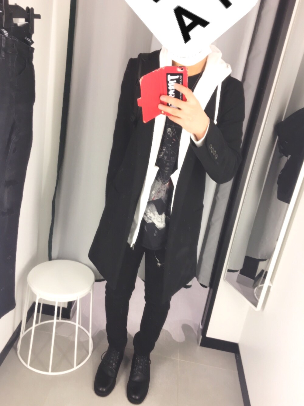 スキニー試着するついでにパシャり📸H&Mにて かっこいいTシャツH&Mに売ってたので前に買いました! 今日はブラックテイストに白パーカー&シルバーアクセ(キーリング)ですすす!! フォロー&いいねお願いしやす