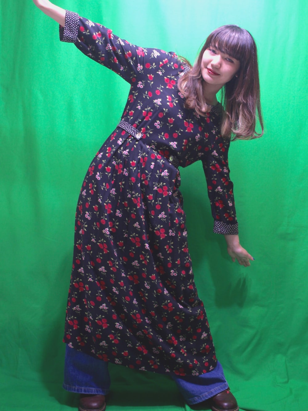 . おジャ魔女どれみポーズ。 ロングワンピにワイドデニム合わせるのかわいい。 -------------------------------- Epic. 〒420-0852 静岡県静岡市葵区紺屋町4-9 松永紺屋町ビル4階 電話番号:054-260-4517 営業時間:14:00-22:00 定休日:不定休 MAIL:epic.usedclothing@gmail.com online shop:https://epic.shopselect.net/ Instagram:https://www.instagram.com/epic.usedclothing/