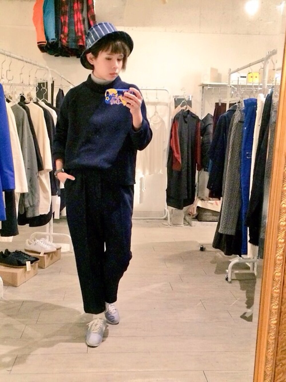 まだまだ寒い頃。 PARTON DE MOIのウールスラックスにハイネックウールトップスでセットアップ風に。 ネイビーは相変わらず好きですねぇ