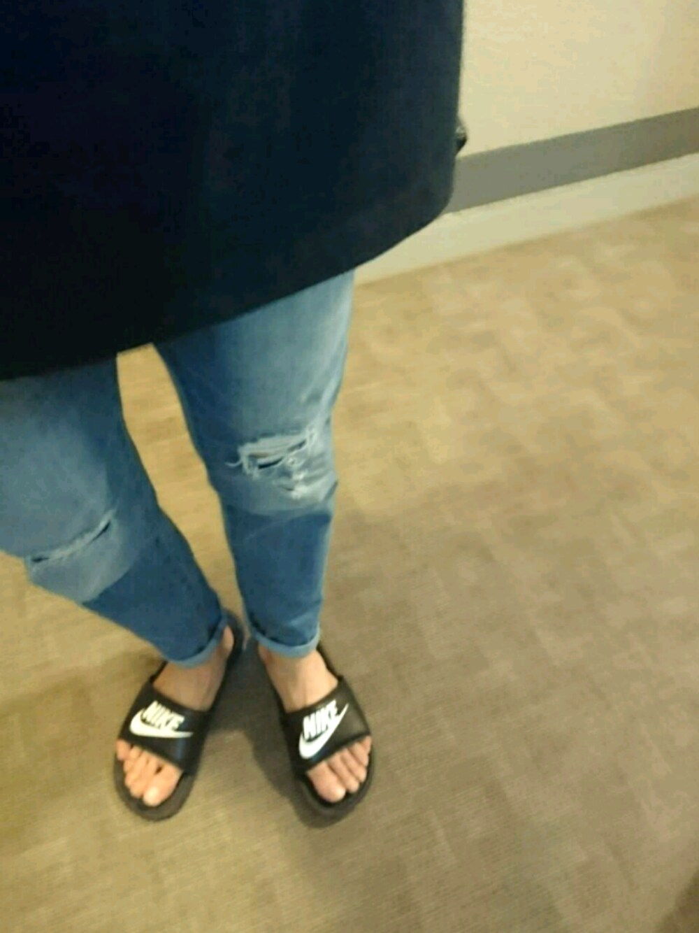 コンビニ行きますコーデ。 ユニクロのデニムは自分でダメージ加工しました。