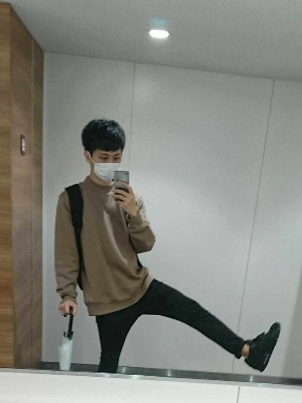お久しぶりの投稿です。 今日最高気温24℃て、、、 アウター脱ぎ捨てました。 GUのスウェットのゆるい感じとモックネックのきれいめ感がいい感じのバランスやと思いました。