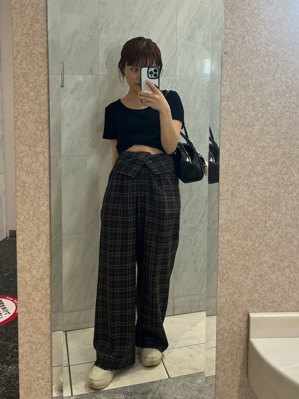 アメリのこのパンツ、ボタン全部閉めたらハイウエストの形にもなるの🫶🏻 これはボタンを開けて折り曲げて着てる🫶🏻