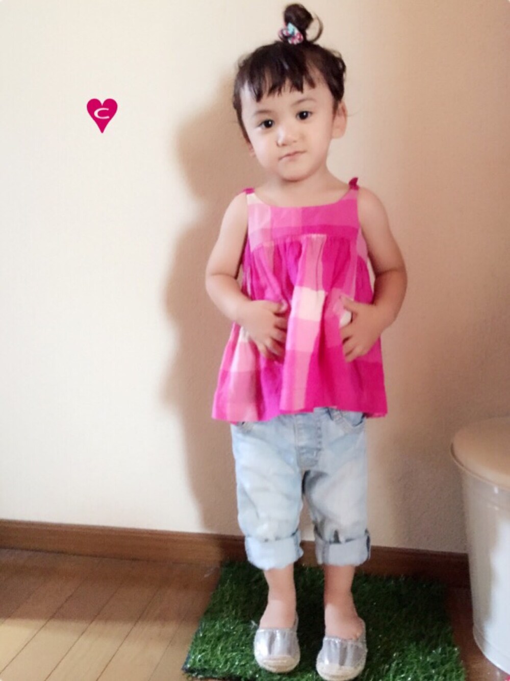 猛暑日だった日のコーデ💦 帽子は全くかぶらない妹チャン…家の中ではご機嫌にかぶる…