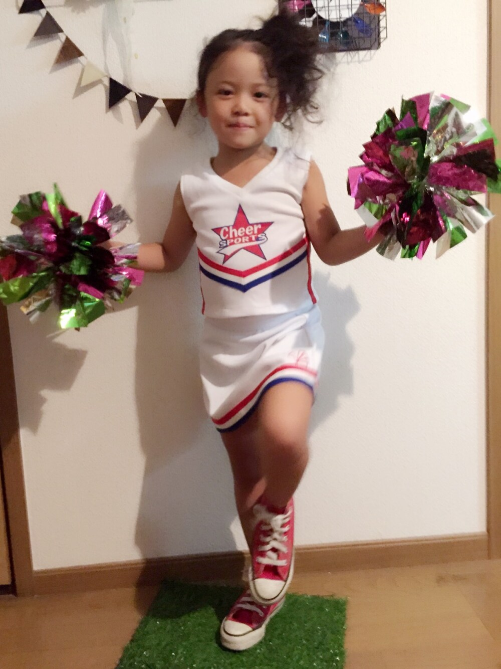 幼稚園の運動会で着るチア服を洗濯するのに持って帰ってきたので、とりあえず着せてみました‼︎ コーデ関係なくてすいません💧キロクに1枚〜 ShakeItOff踊るんだって‼︎ティラーだって‼︎ あたしの保育園時代はみんなで菅笠音頭踊ったもんだ…💧