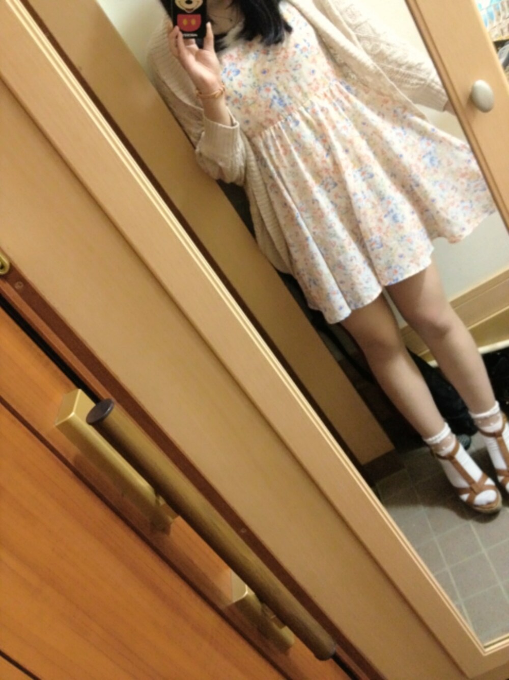 カーディガン/Honeys 花柄ワンピ/Honeys ソックス/ノーブランド サンダル/Honeys