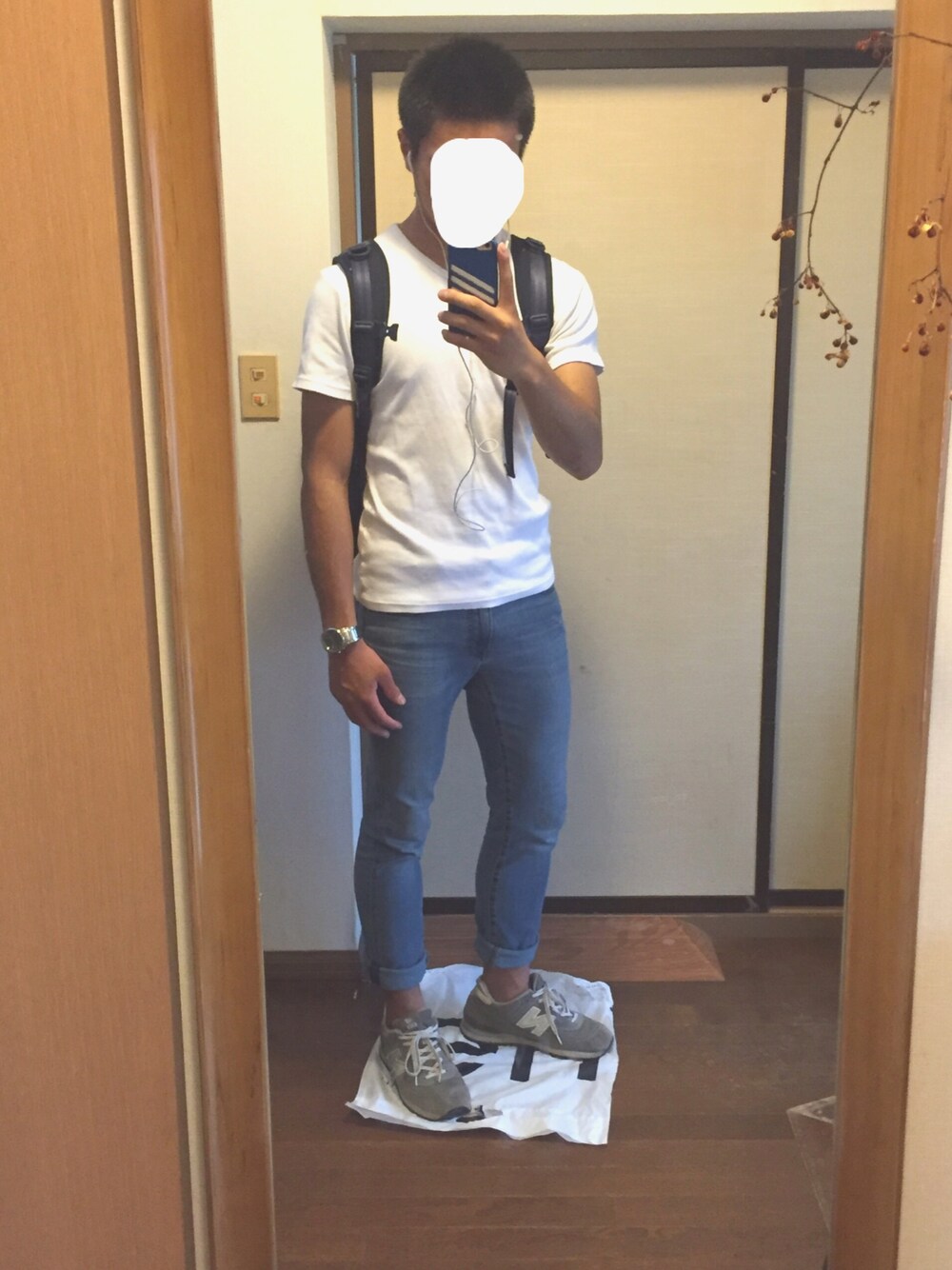 白Tにデニムが1番楽でいい感じです。 ひさびさにニューバランスで合わせてみました! スニーカー2足しか持ってないのでそろそろ新しいの欲しいです😑 今日は地元のお祭り!! 僕は受験生なので勉強です。笑