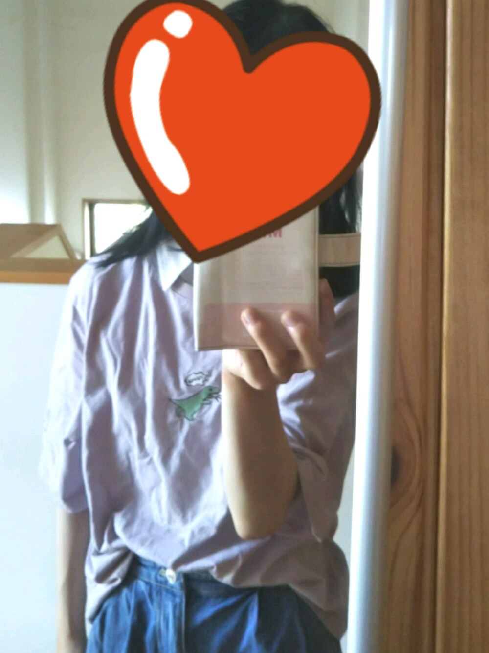韓国っぽいコーデです! つけ襟でより可愛く! トップスの恐竜さんに一目惚れして買いました♡︎ クシャクシャなのは気にしないで.........。