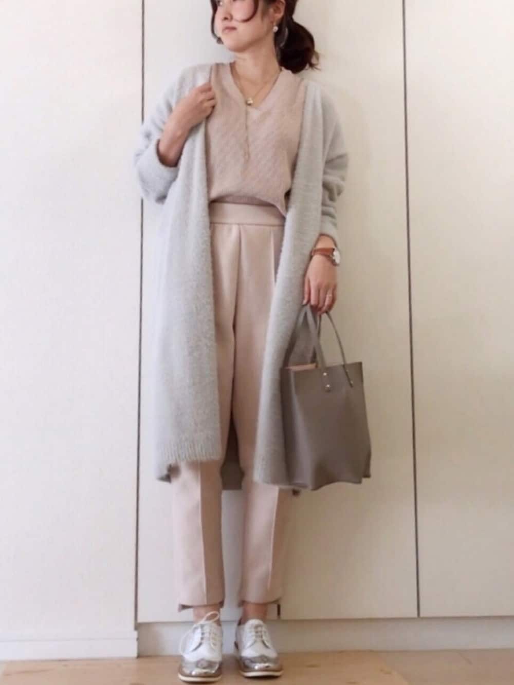 見ていただきありがとうございます✨ 保護者会だったのできれいめ😊 MOCAさんのパンツ暖かくてきれいな形で気に入ってます✨ ロクのサーマルは春らしいピンクを選びました😊