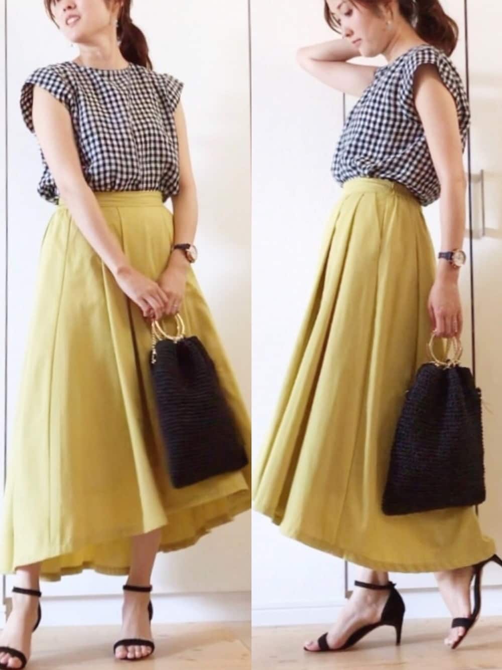 見ていただきありがとうございます✨ ギンガムチェックにイエロースカート😊 連休もあっという間ですねー💦💦💦