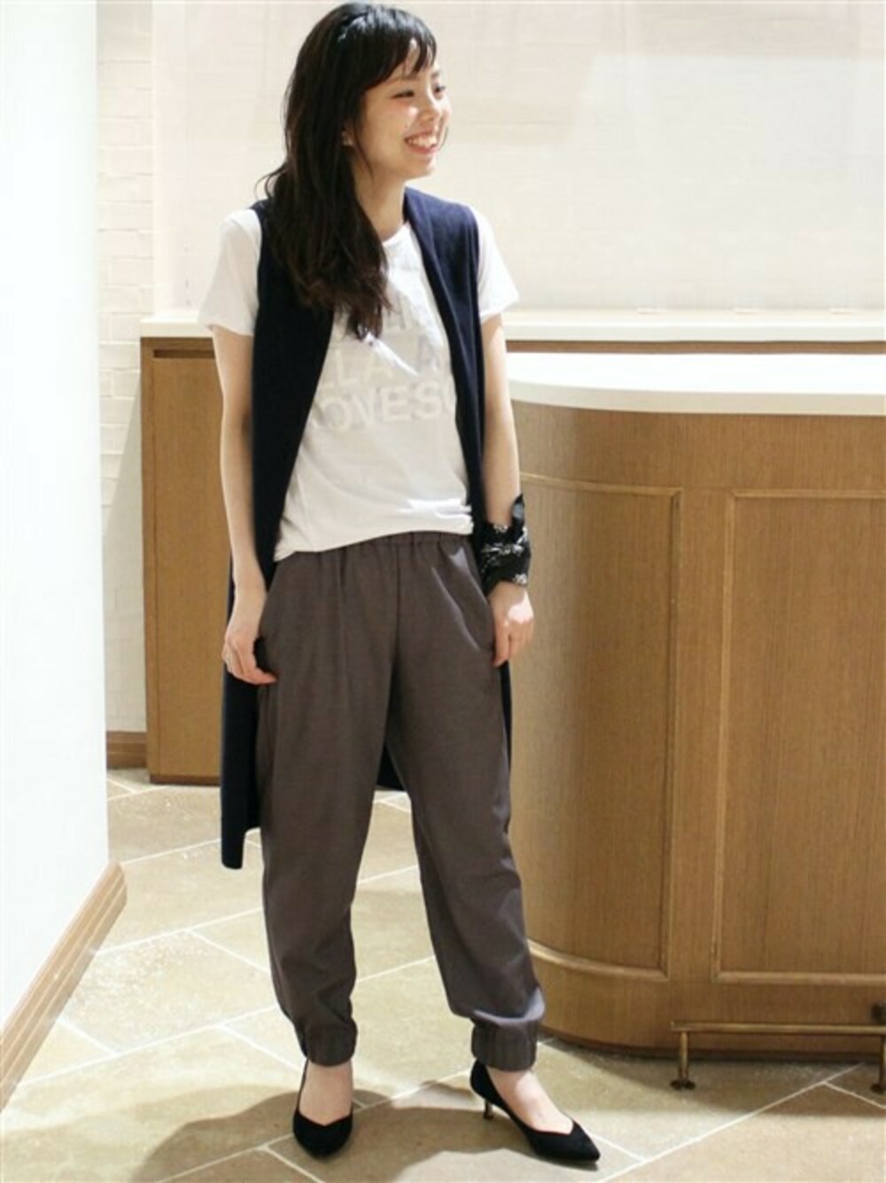 ボーダートップスやシンプルなTシャツとスニーカーでカジュアルに合わせるのもオススメです。 シャツとパンプスで少し大人な印象にしていただいても◎