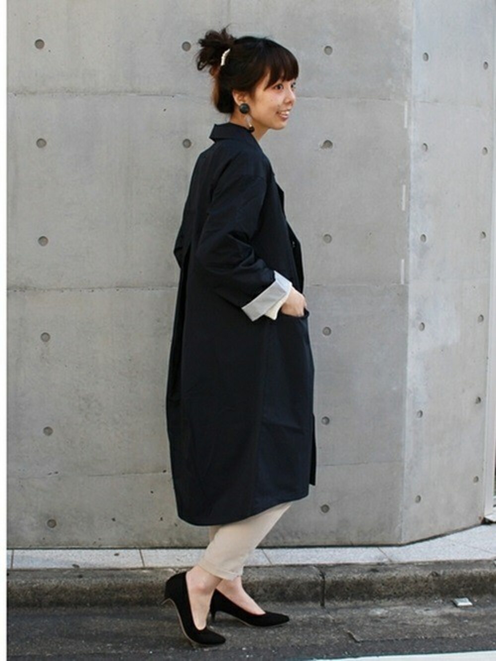 後ろにタックが入っていてフワッと軽やかに、女性らしく着られるコート。