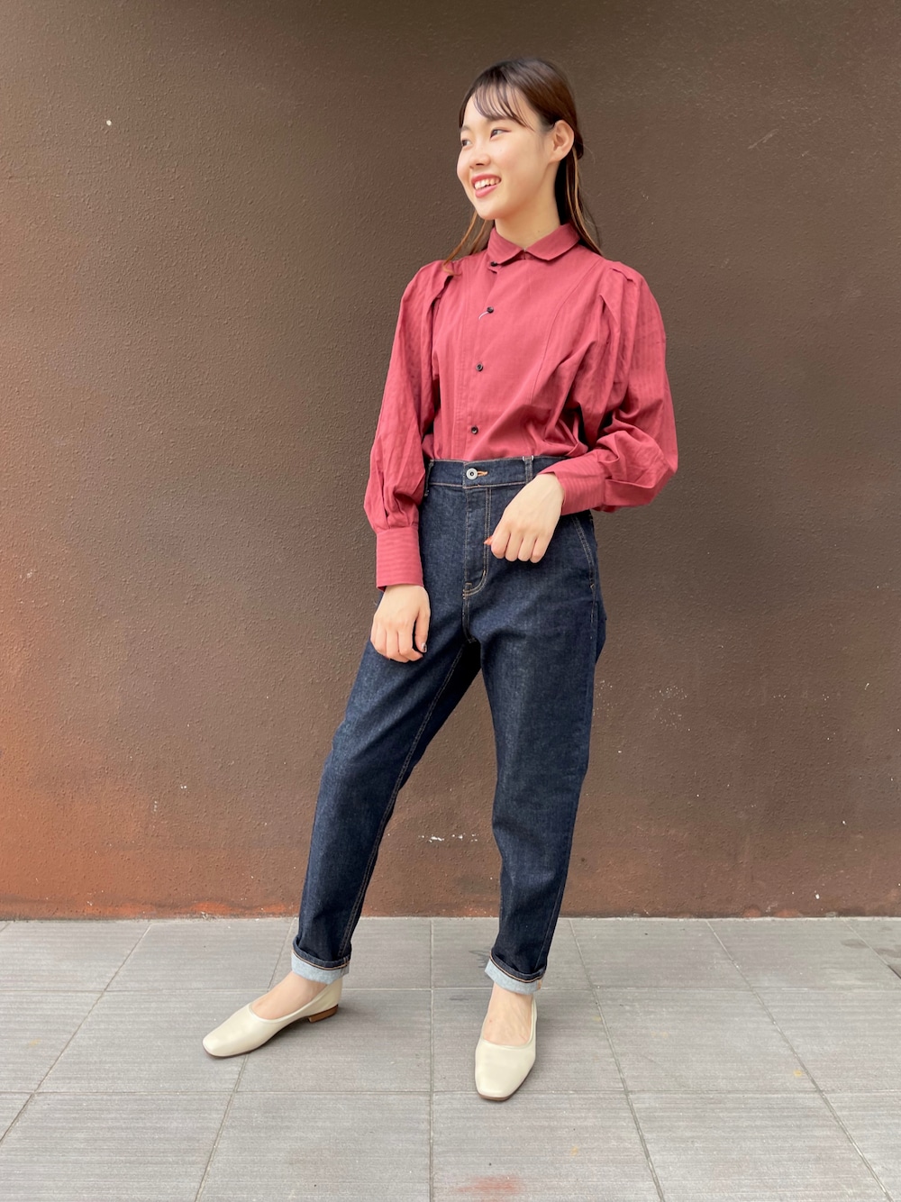 コックシャツのディテールを落とし込んだこちらのシャツ! シックな色と袖のボリュームで女性らしい雰囲気を演出できますね◎