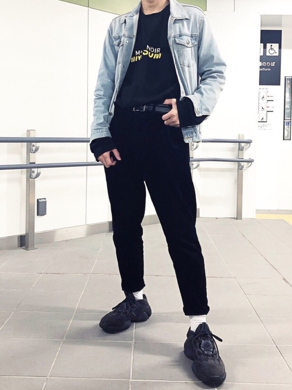久しぶりにデニムジャケットきた🙆♂️ マルシェノアのロンtがオーバーサイズでデニムジャケットからはみ出るのが好き🧡