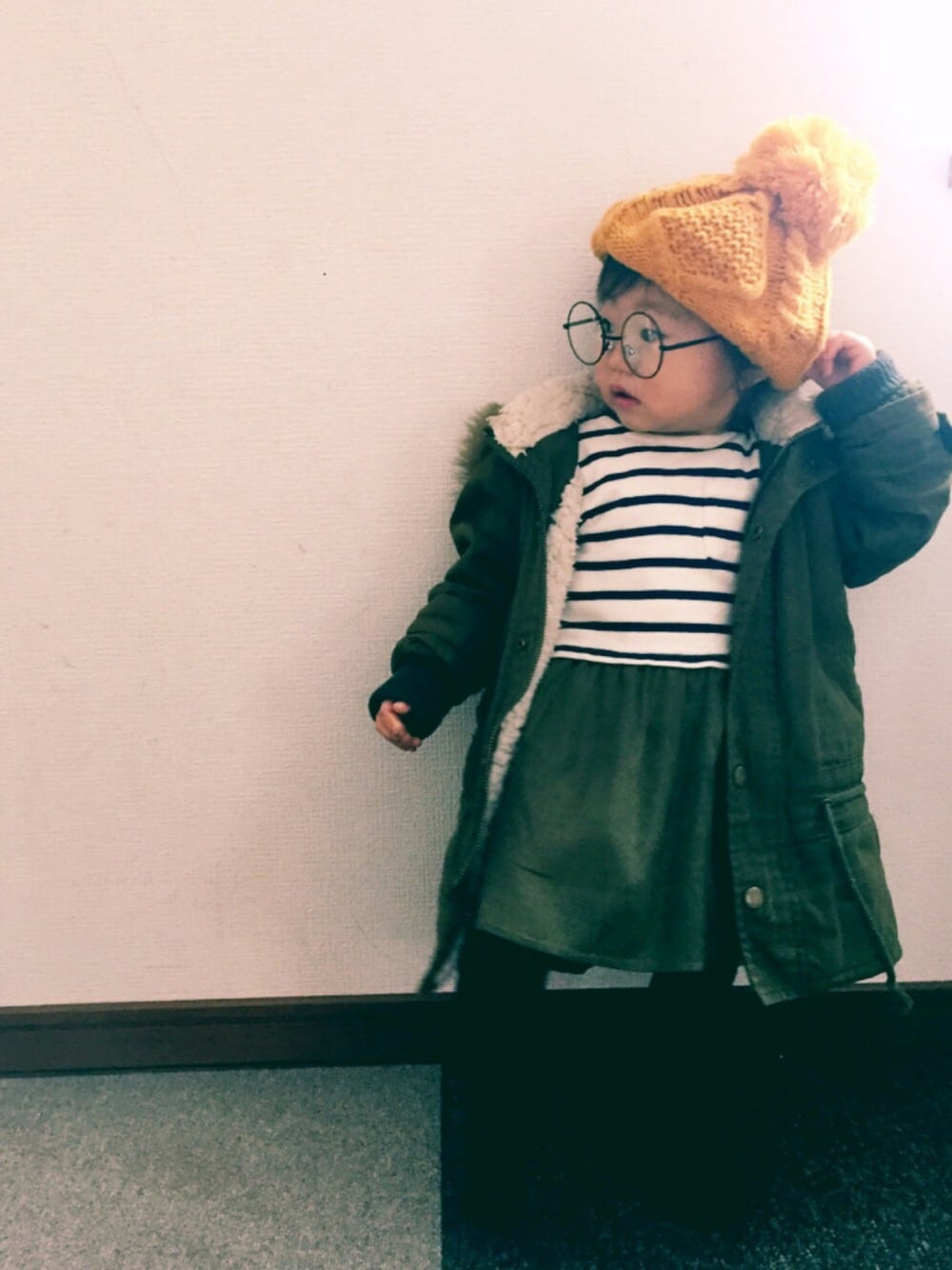 最近メガネにハマって帽子を嫌がる娘。 急いで写真をとる母。 そしてうちの薄毛娘、1歳10ヶ月にして前髪が目にかかるくらい伸びてきた😳🙌早くしばれるくらい長くならないかな♡