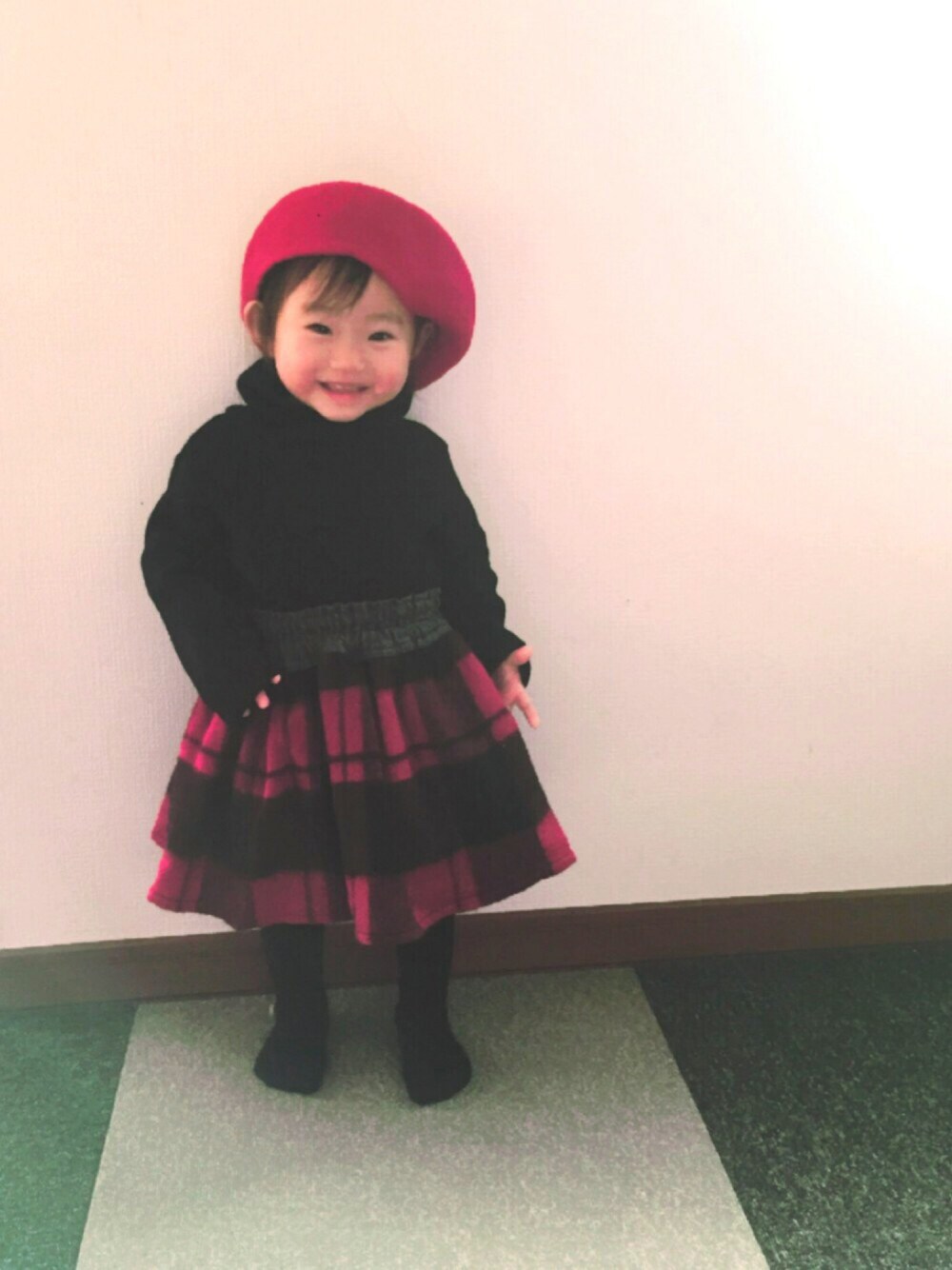 プティマインのスカート♡ 可愛すぎるー😍♡ 普段80cmぴったりになってきた娘には 90cmのスカートは少し大きめ。 中はパンツになっているのでしゃがんだり ころんだりwしても安心😌