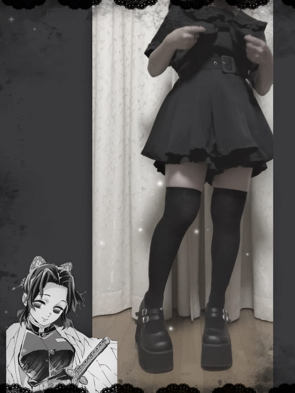 DearMyLoveのワンピースの丈を短くしたくて切って縫ったけど予想以上に短くなったので、LIZLISAセーラー服のセットアップのパンツを中に履いたらあら可愛い……!🫧🤍・ 。 新しい発見ができました むちこです🌀 ___ .