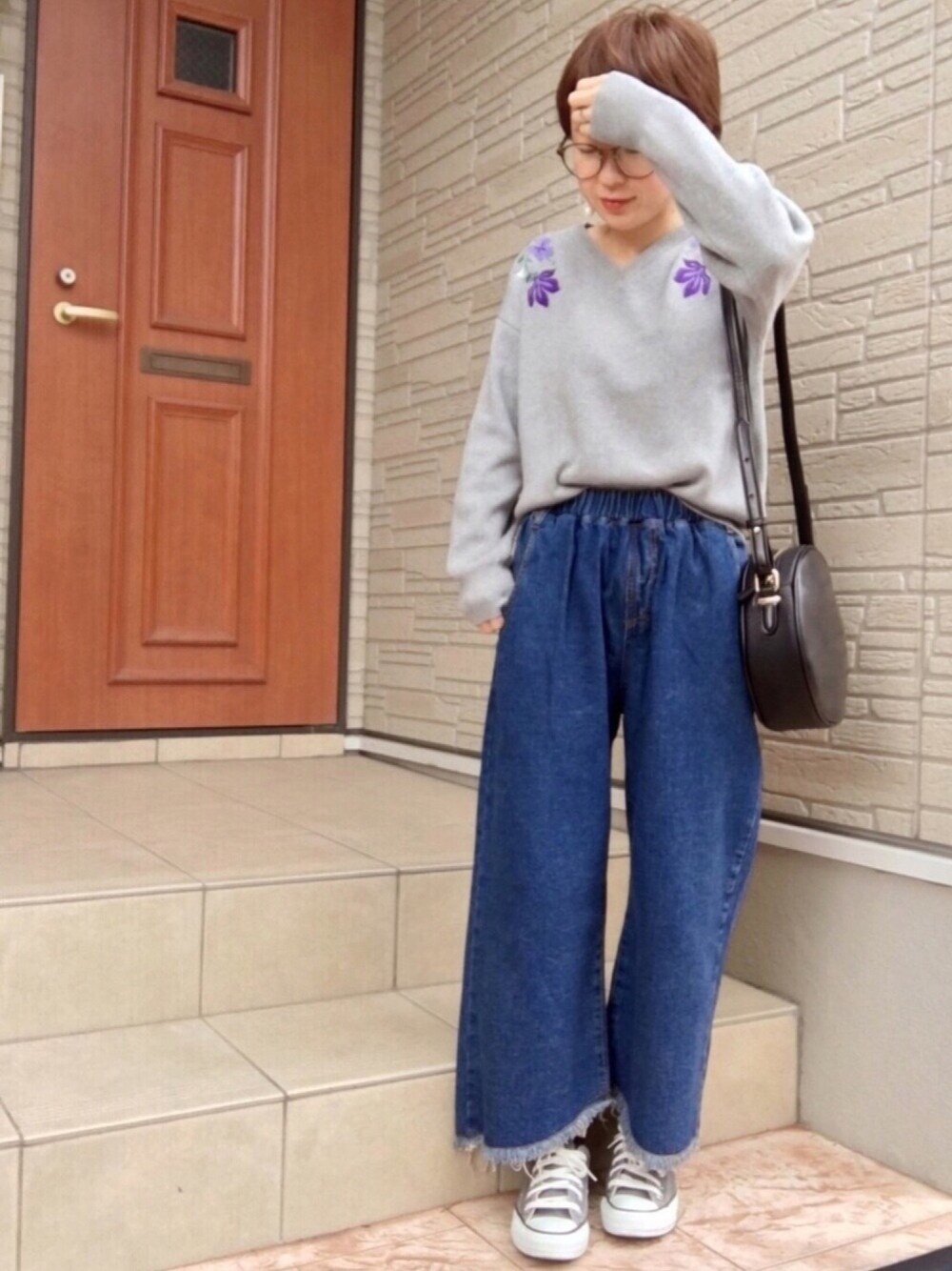 aaachan♡*のニット/セーター「・ショルダー刺繍 長袖プルオーバー」を使ったコーディネート