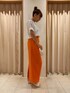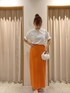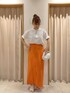 白Tシャツに夏らしく明るいオレンジのスカートで合わせてみました😊 このオレンジはMとLでスカートの長さ2サイズご用意しております😊 あたしが履いてるのは丈の長いLサイズです😊