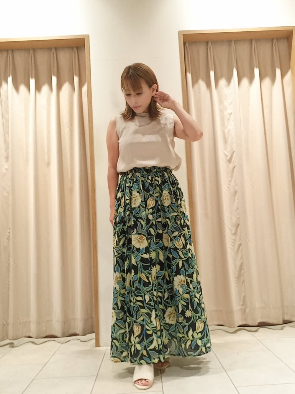 Akkoのシャツ/ブラウス「アセテートタフタノースリブラウス(吸湿速乾)」を使ったコーディネート