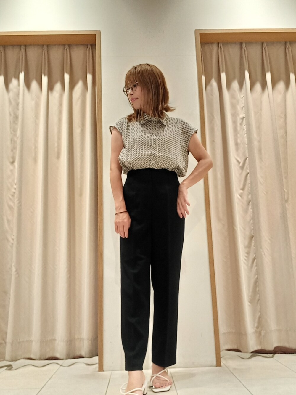 ご覧頂きありがとうございます😄 テチチの人気ブラウスにシンプルなテーパードパンツ合わせてみました😄