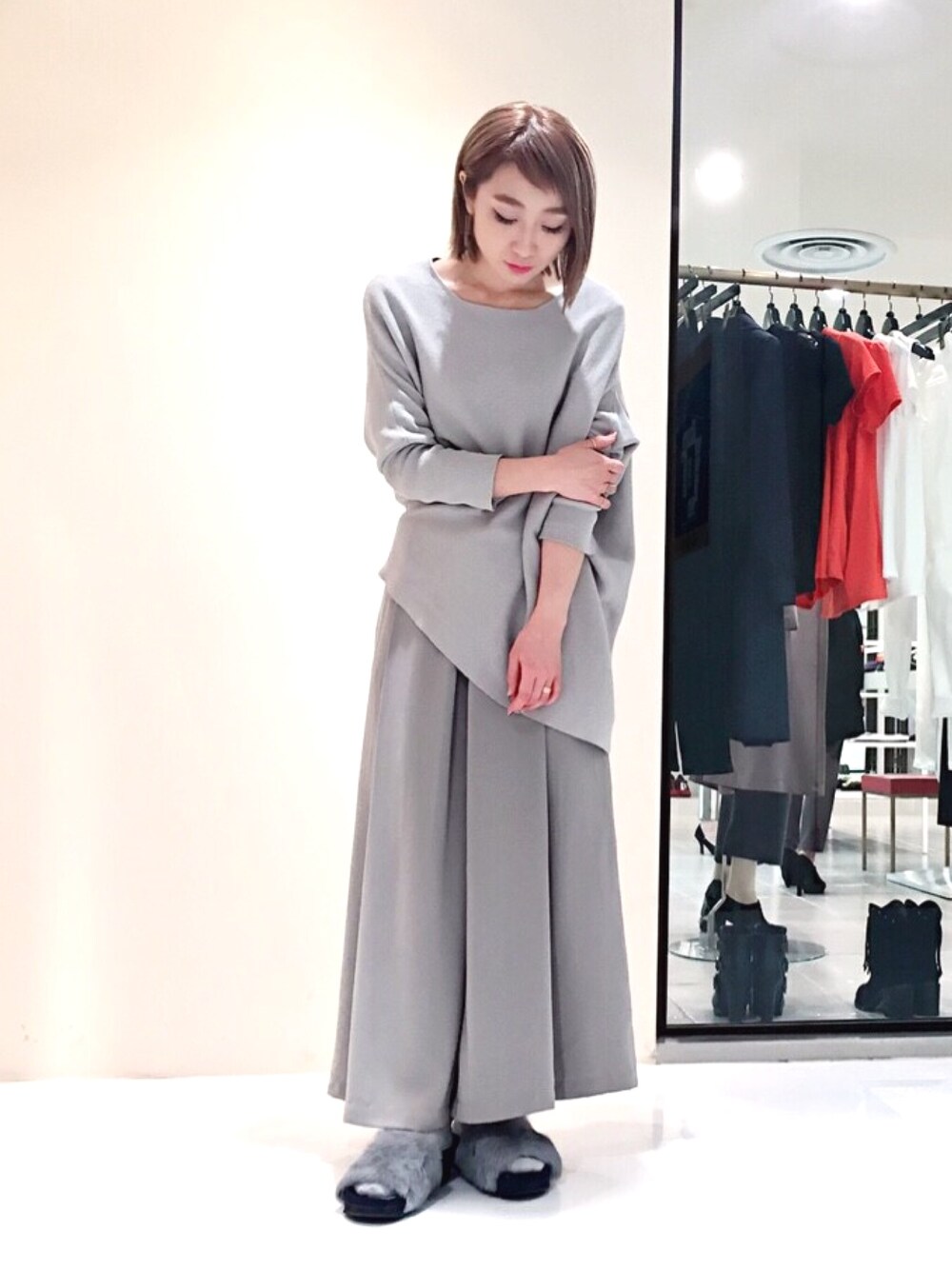 全身GRAYのワントーンコーデ♡ 今年トレンドのスカウチョに変形ニットで個性的なスタイル