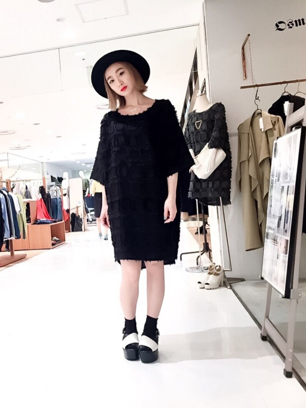 フリンジのデザインワンピースは甘すぎずモードな印象♡