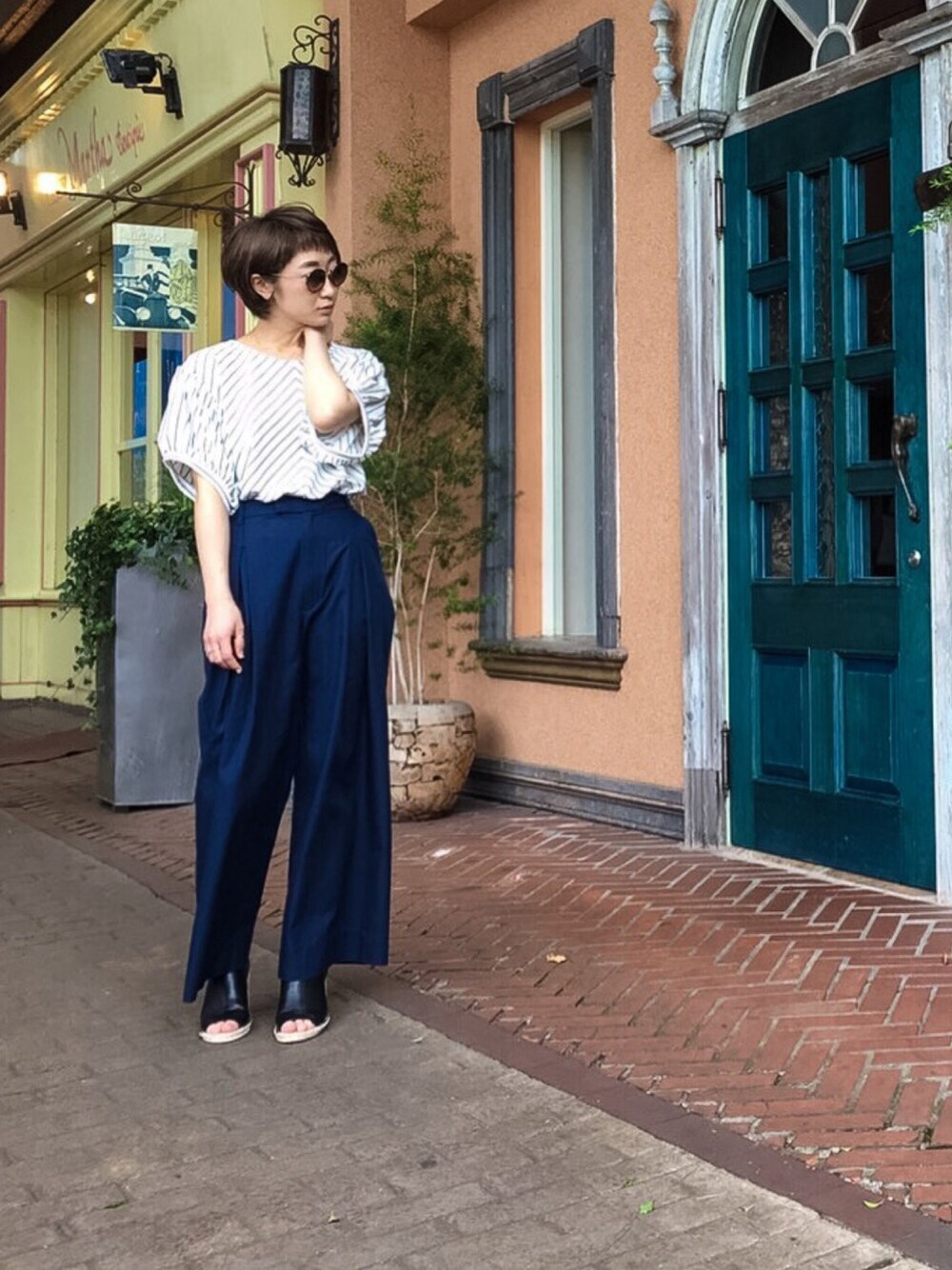 バイアスボーダーで大人っぽいマリンルックに決まる1枚♡ワイドパンツを合わせて今季っぽく